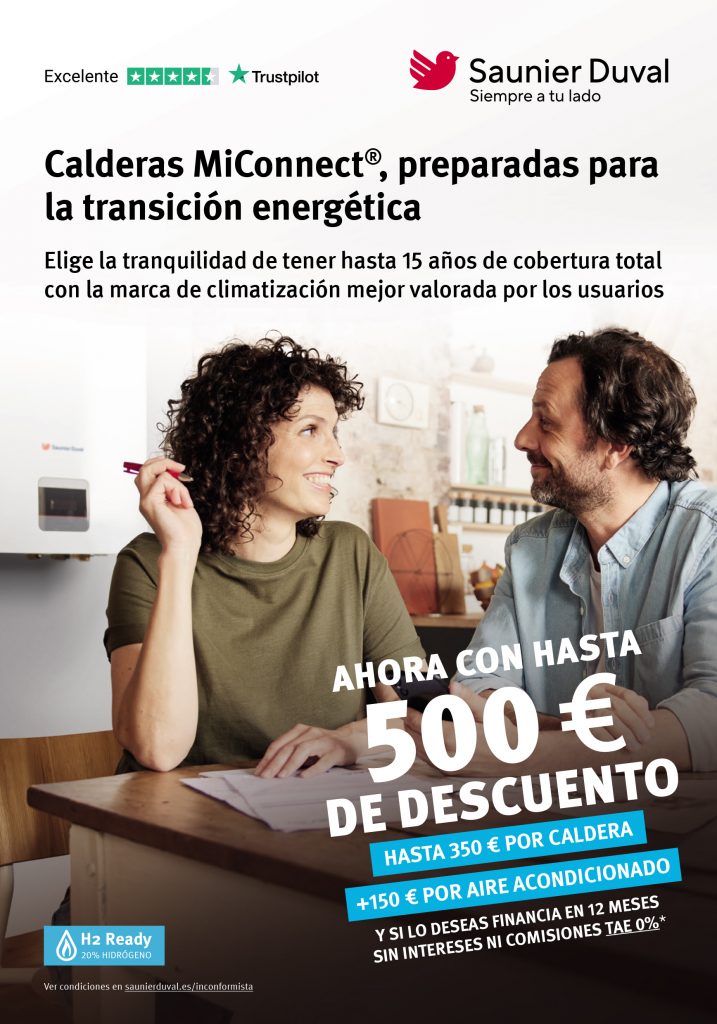 Del 9 de mayo al 10 de julio, los usuarios tendrán hasta 500€ de descuento: hasta 350 € por caldera y 150€ por aire acondicionado.